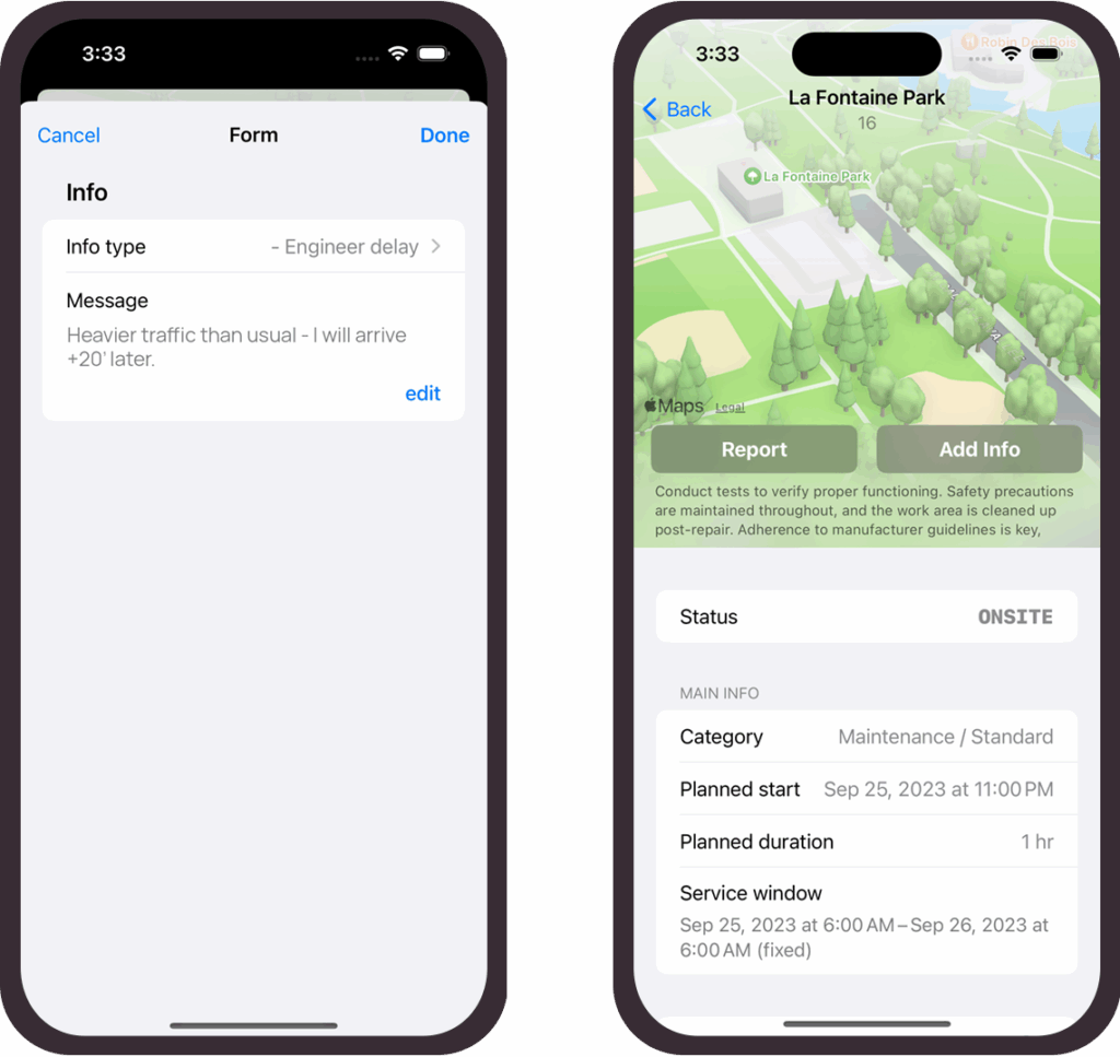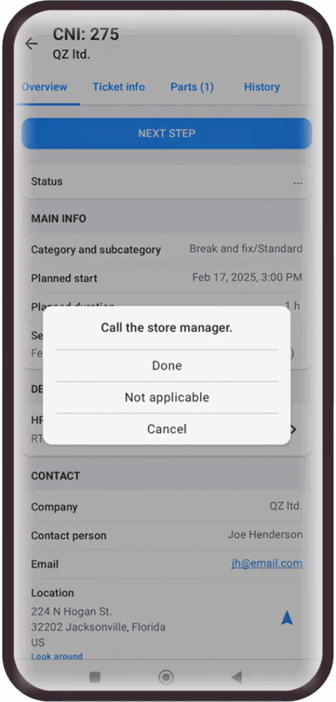 Techniker können Details zum Zeitplan, Kommunikation, Notizen und Fotos zum Auftrag sowie Aktualisierungen des Auftragsstatus und umfassende Auftragsinformationen bequem in Echtzeit abrufen. Proaktive Benachrichtigungen und Echtzeit-Updates ermöglichen eine nahtlose Priorisierung von Aufgaben, eine Optimierung des Zeitplans und die Einhaltung von Service Level Agreements (SLAs).