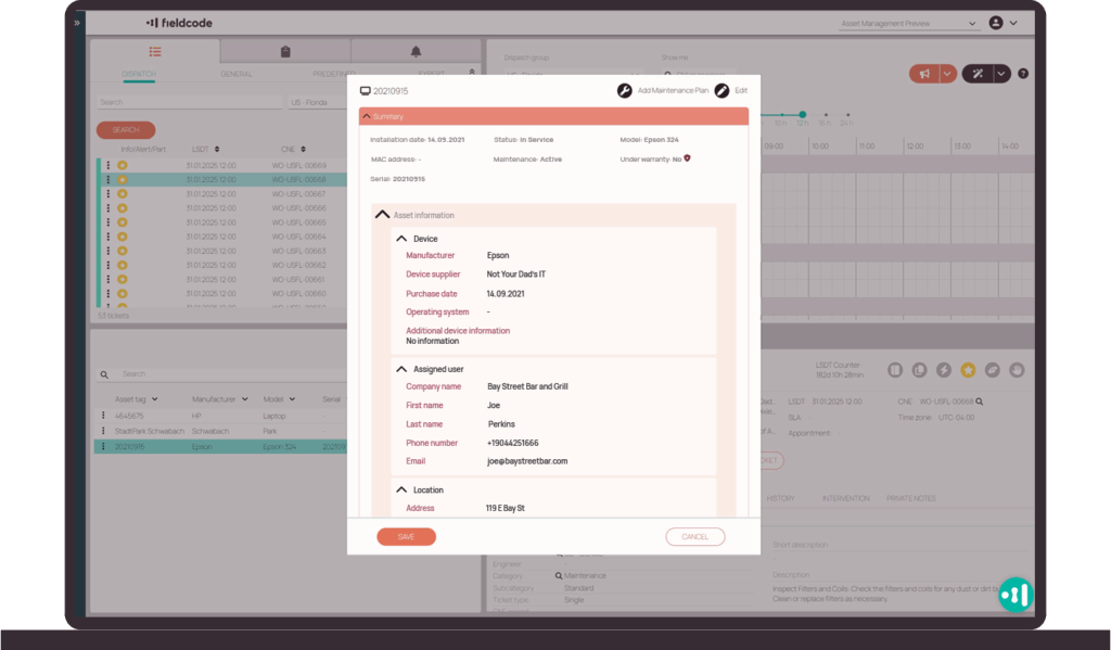 Tickets are created automatically for both scheduled and forecasted maintenance. Fieldcode supports preventive maintenance based on time or usage rules, and predictive maintenance when equipment data signals a likely failure—reducing downtime and avoiding unexpected breakdowns.