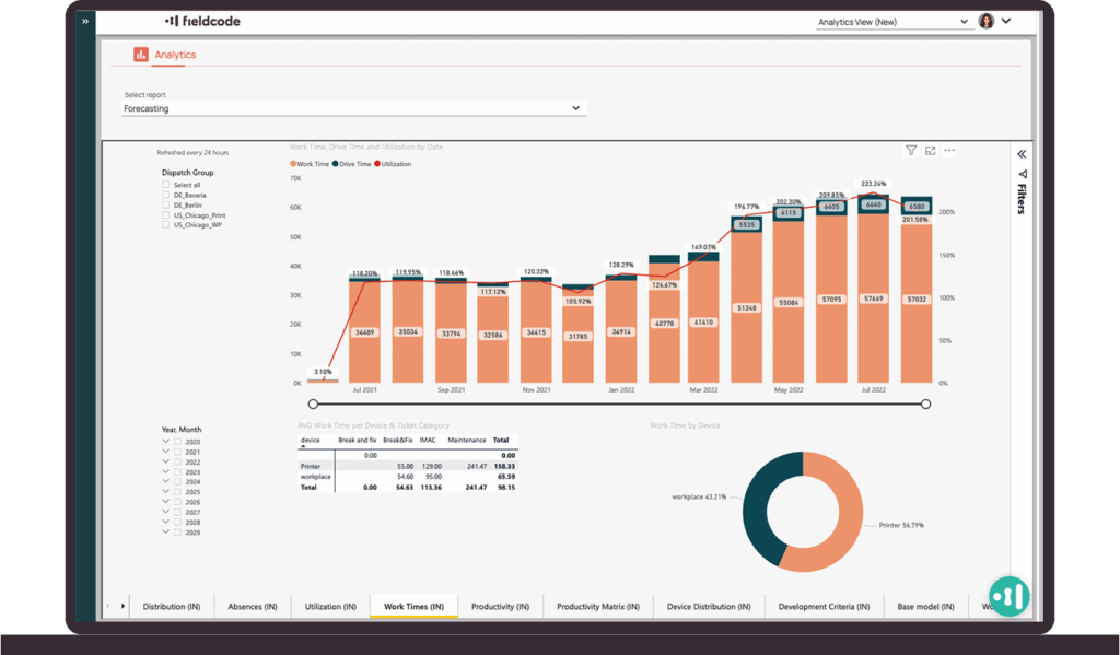 Service data automatically generates forecasts showing trends and demand by team, location, or time period—so you can plan ahead without manual effort.