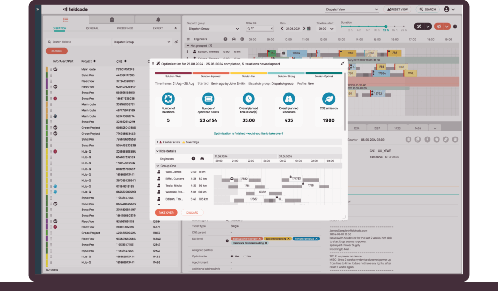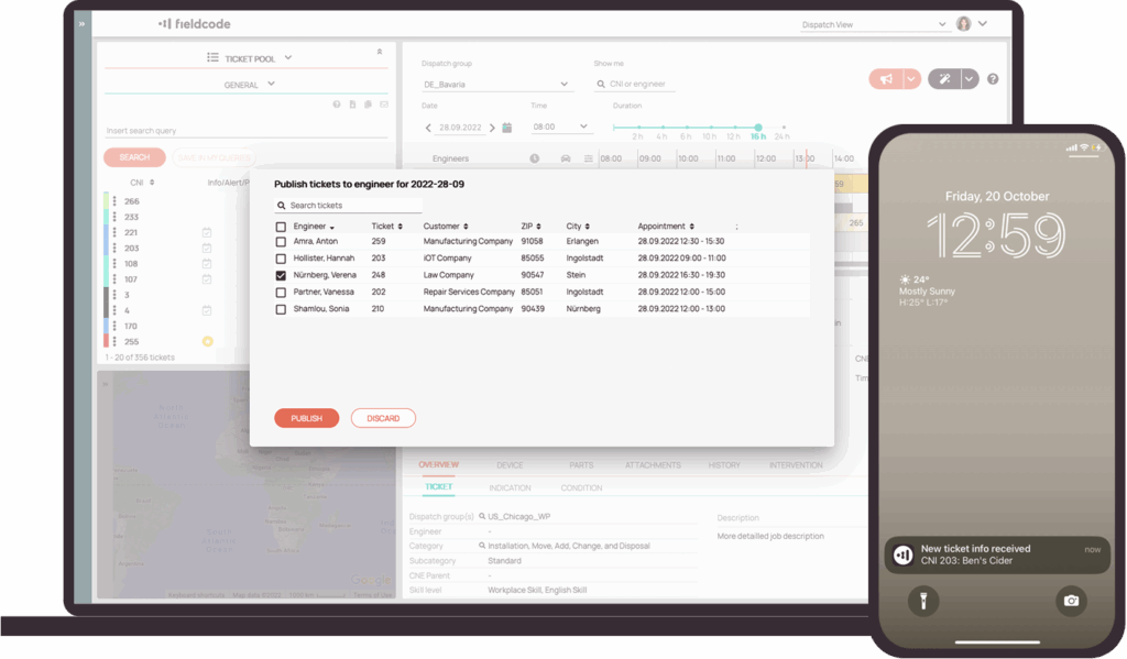 Every ticket is dispatched automatically with smart rules that match the right engineer based on skills, location, and efficiency. The unique Engineer Efficiency Factor accounts for each technician’s speed and proficiency— keeping schedules balanced and customers served without delay.
