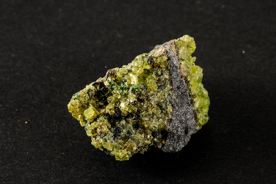 Olivine is a magnesium iron silicate mineral that is relatively common in certain volcanic rocks and the major component of the Earth´s mantle. It’s usually an olive green color, but it can be more yellowish if it contains higher amounts of iron. Olivine can be found in high concentrations mainly at locations where plate tectonics pushed mantle rocks up onto the Earth´s crust.