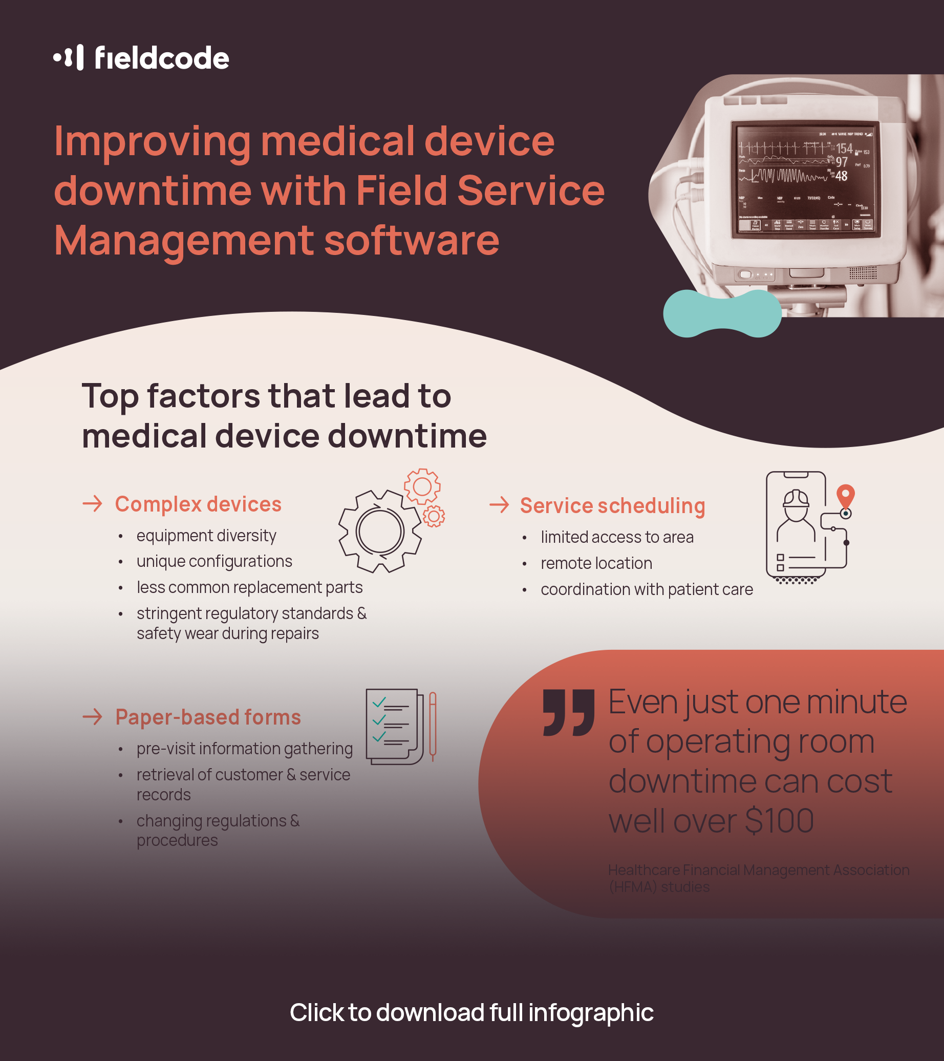 This infographic reveals the unique obstacles medical device service technicians face and explore how field service management (FSM) software can help overcome key challenges: