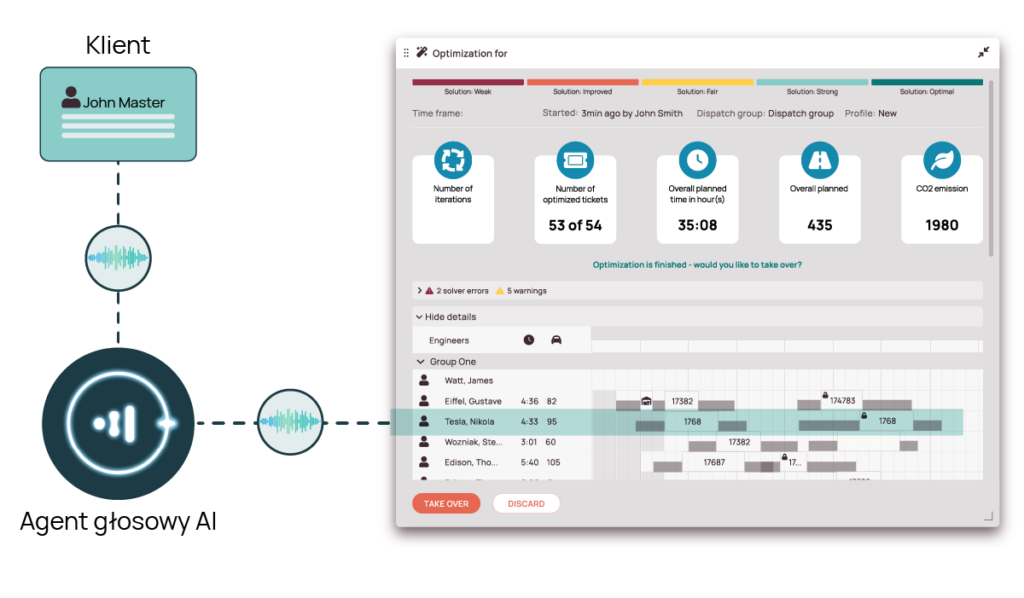 Integracja głosowego agenta AI jest już częścią platformy FSM Fieldcode — bez dodatkowych narzędzi i systemów. Połączenia uruchamiają działania w czasie rzeczywistym w ramach Twoich procesów, harmonogramów i danych techników — dzięki czemu nic nie umknie Twojej uwadze.
